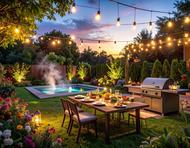 Sensor or timed lighting saves energy and adds convenience when the party winds down.